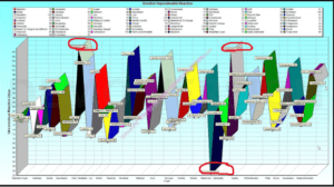 Figura 1 ilustrează o EVALUARE prin biofeedback a graficului emoțiilor unui antreprenor în stadiul inițial, înainte de aplicarea oricărei forme de terapie.