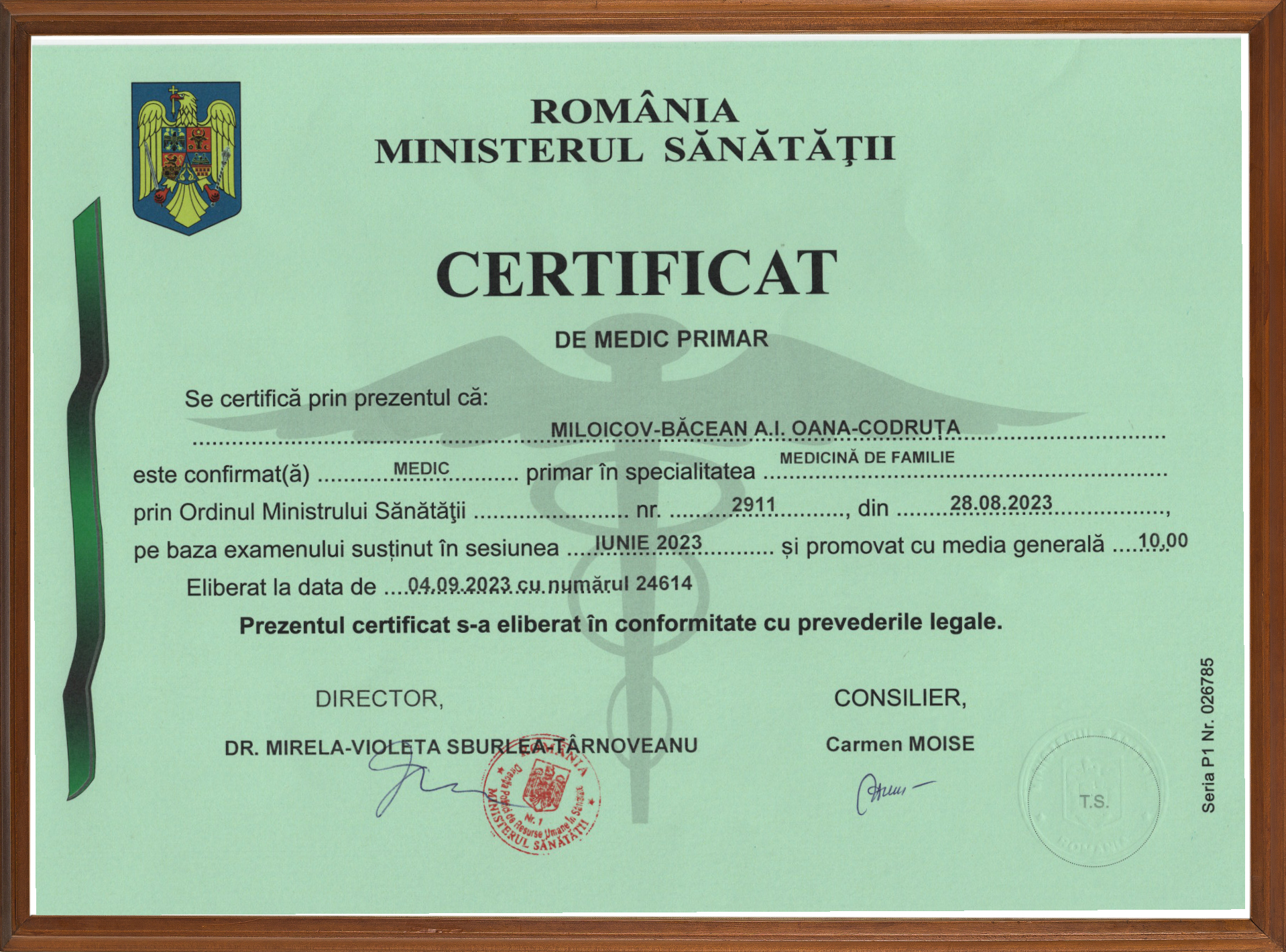 Primary Specialist of Family Medicine Primary Specialist of Hygiene IMUNE International Accredited