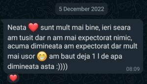 Rezultatele au fost remarcabile! Perioada virozelor s-a redus semnificativ, simptomele au devenit mult mai ușoare și starea clinică s-a îmbunătățit considerabil. Am fost uimiți să constatam că, în cazurile în care totuși am făcut o răcelă, simptomele au durat maxim două zile și au fost mult mai ușor de gestionat și fără efecte adverse.