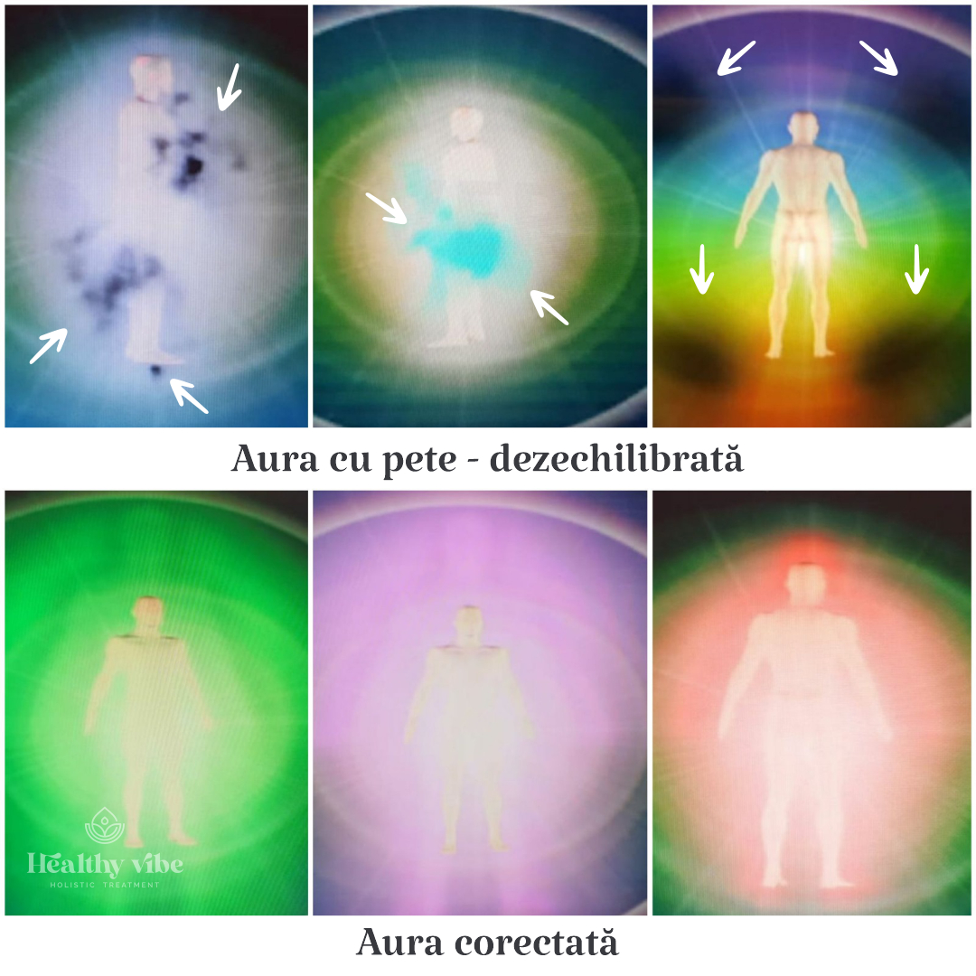 Imaginile de mai sus prezentate evidențiază diverse tipuri de AURA dezechilibrată, în timp ce imaginile de mai jos prezintă exemple de AURA echilibrată prin terapia prin biofeedback. Este important să evaluăm și să menținem echilibrul AUREI noastre pentru a ne menține starea de sănătate și bunăstare. Terapia prin biofeedback poate fi un instrument valoros pentru atingerea acestui scop, oferind posibilitatea de a influența AURA într-un mod benefic.